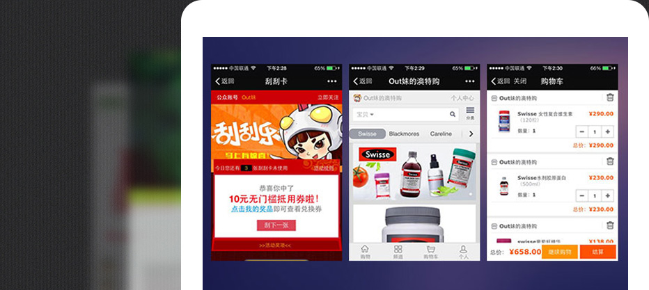 个性的店铺装修、、更强大的SCRM系统、、、、更完善的基础交易系统、、、、更丰富的微信游戏互动