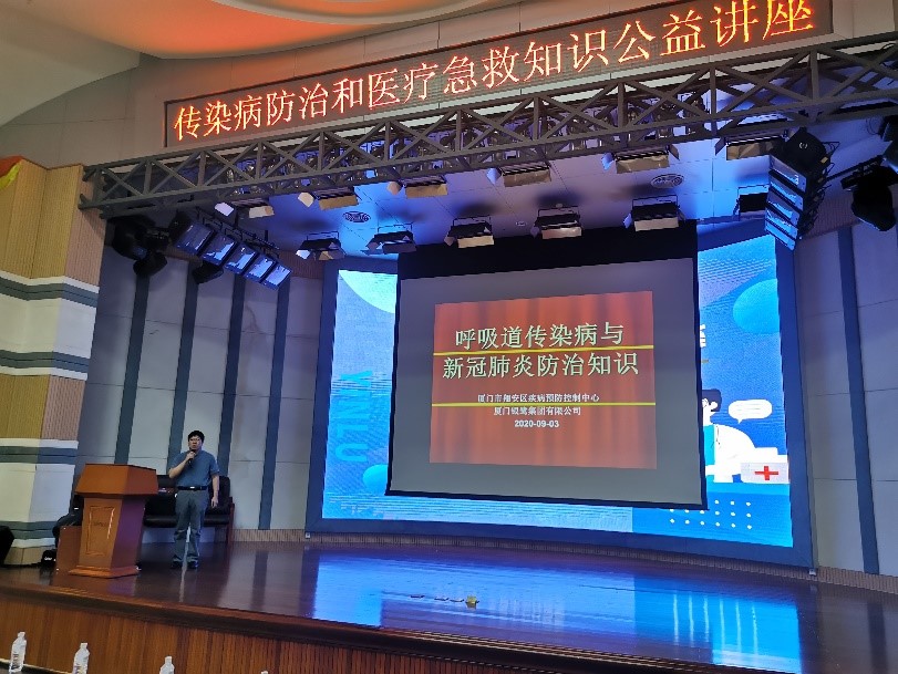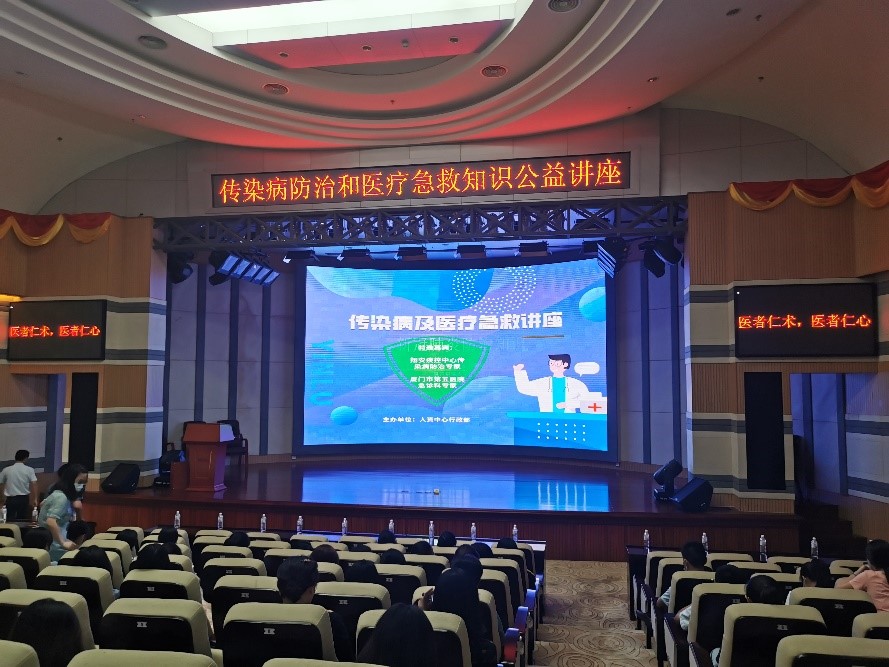 讲座于9月2日下午在总部3F大礼堂进行,,,,翔安区疾控中心传染病防治专家叶医师、、厦门市第五医院急诊科张护士及其团队为大家授课。。