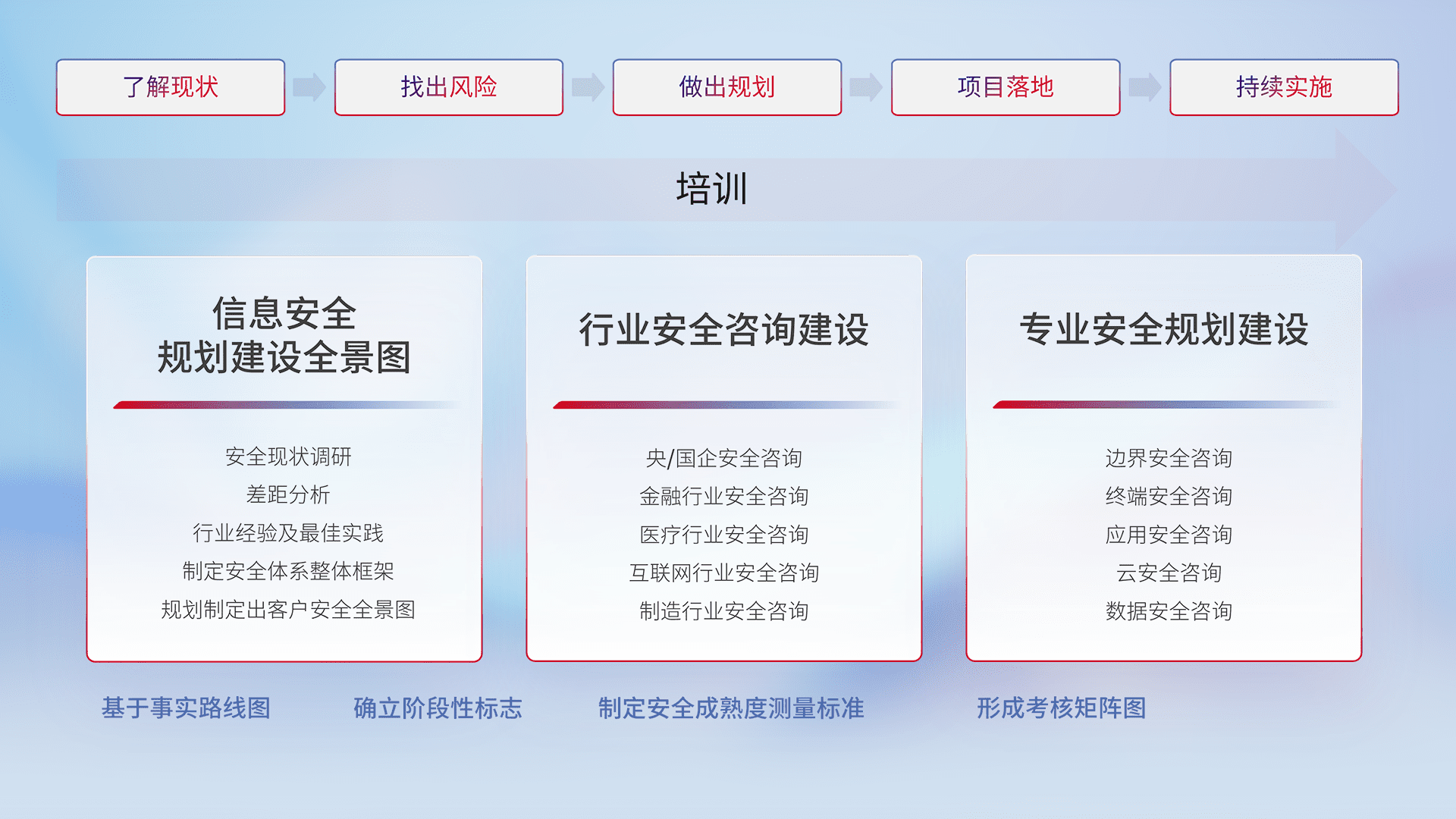 梳理客户信息安全现状调研、、差距分析结果,,结合行业先进经验及最佳实践,,,制订客户的信息安全管控体系总结架构,,最终形成一个完整的客户信息安全规划与建设的全景图。。