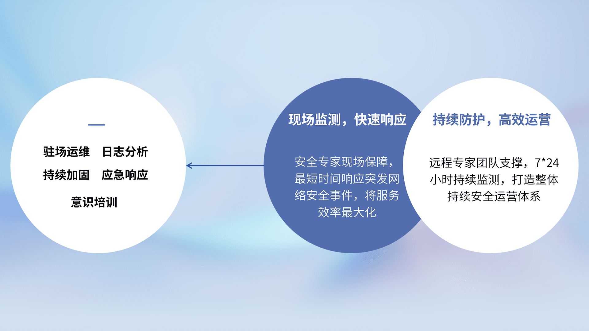 针对客户行业特性,,,提供专属的一站式安全管理服务,,帮助客户全面感知网络空间威胁,,,通过安全专家的线上、、、线下防护支持,,实现风险闭环,,,将安全保障常态化,,为客户打造常态化安全运维运营服务。。